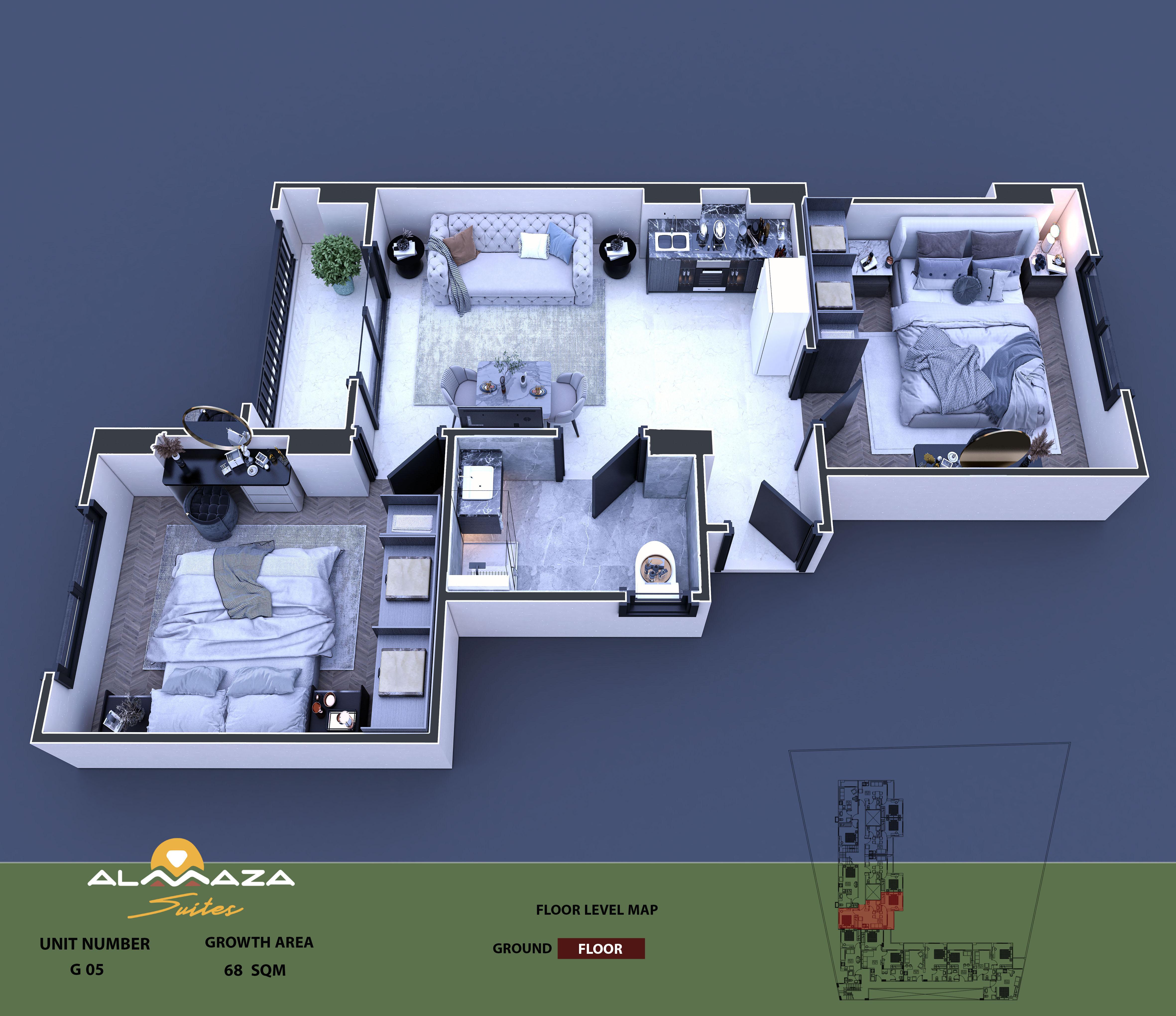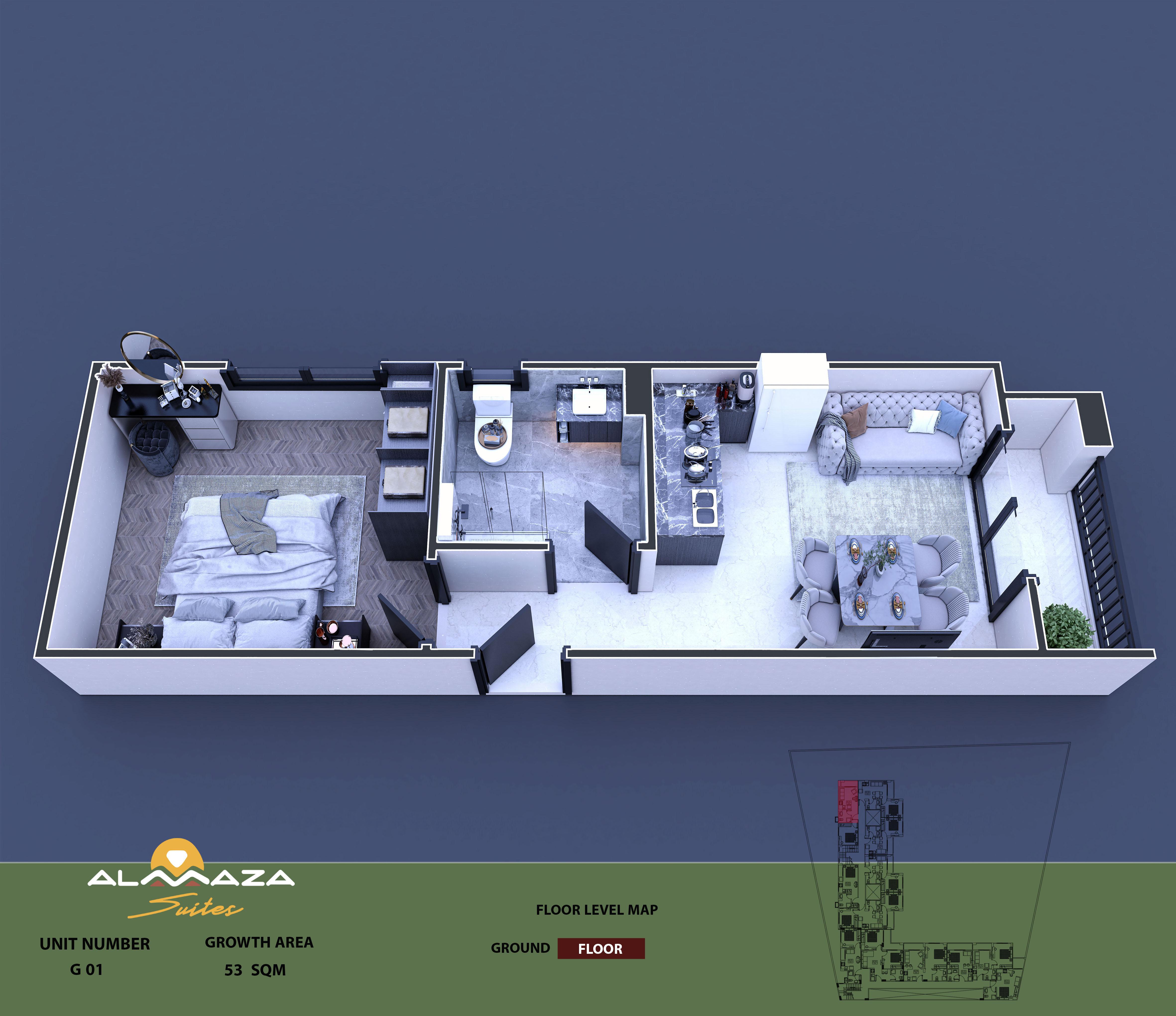 Dank der perfekten Kombination aus Komfort, Natur und erstklassigen Annehmlichkeiten spiegelt Almaza Suites unser Engagement wider, hochwertige Wohnanlagen im Einklang mit der Umwelt und in unmittelbarer Nähe zum Roten Meer zu schaffen.