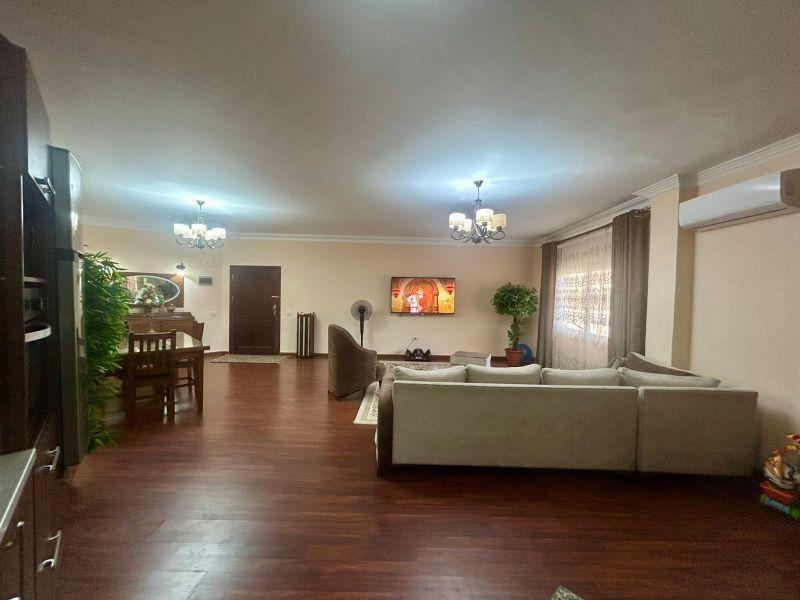 Die 2-Zimmer-Wohnung befindet sich im Erdgeschoss. Raumaufteilung: ein geräumiges Wohnzimmer mit offener Küche, 2 Schlafzimmer und ein Badezimmer. Die Gesamtfläche der Wohnung beträgt 116 m². Im Kellergeschoss gibt es einen geschlossenen Raum, der als zusätzliches Schlafzimmer oder als Abstellraum genutzt werden kann.