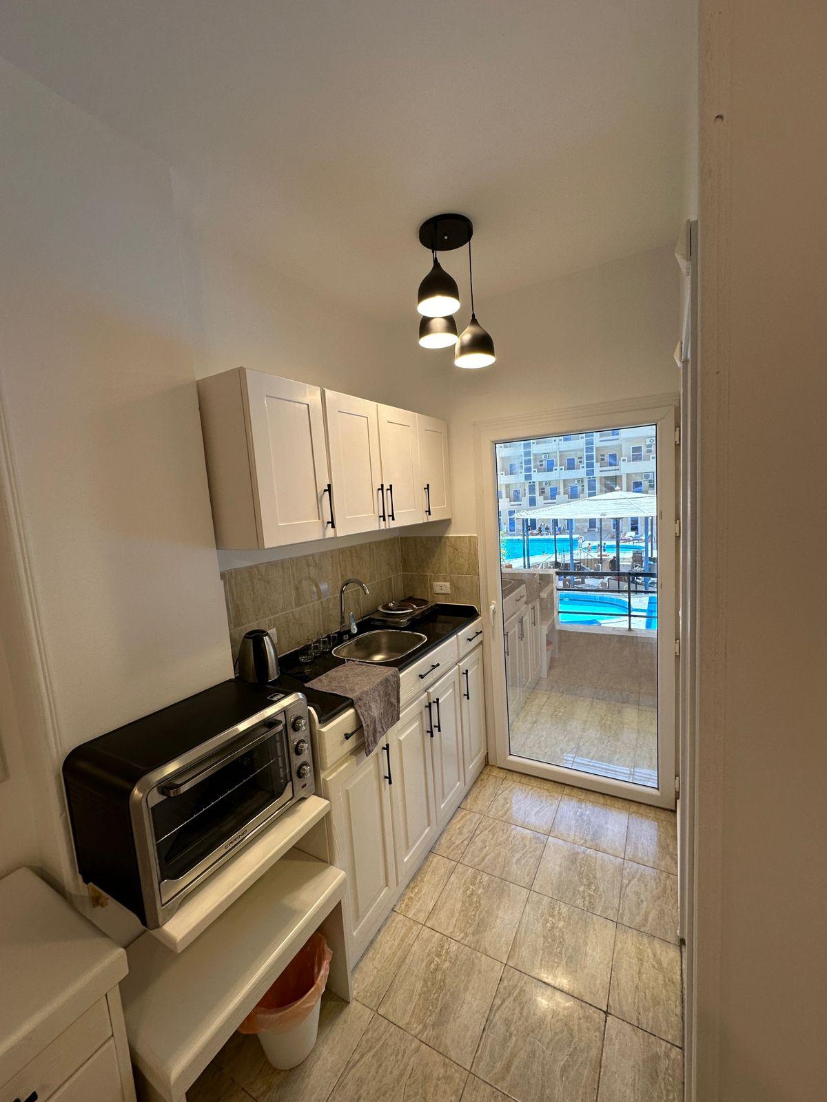 Helles Studio im 1. Obergeschoss der Wohnanlage Tiba Resort im Gebiet El Aheya.